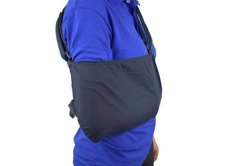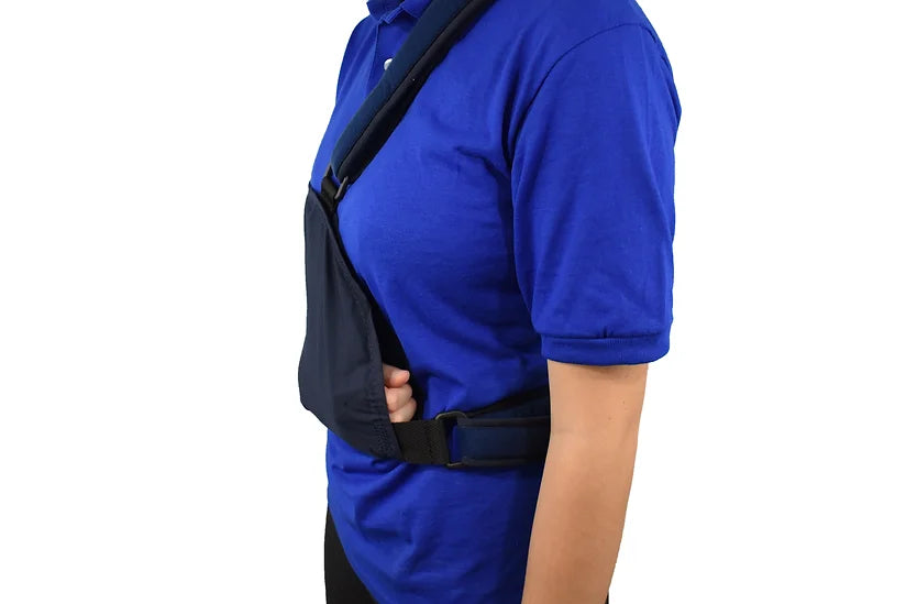 The Standard Shoulder Immobilizer is designed to immobilize the arm and shoulder. It uses waist and shoulder straps that adjust to any size and can be worn on either arm. This immobilizer uses a D-ring design to allow for stability and customized compression. It is constructed with cotton and padded waist and shoulder straps to produce higher levels of comfortability.